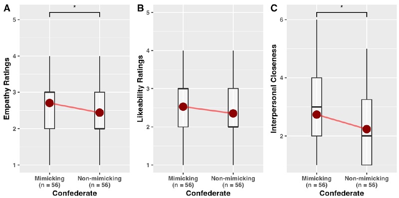 表情模倣を受けることは,主観的な共感体験を増強する.