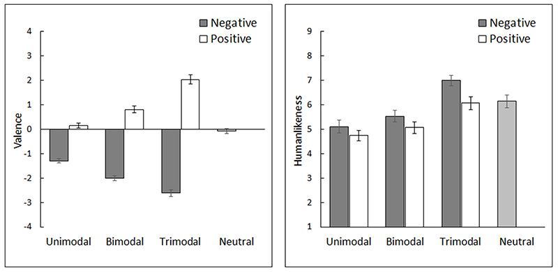 参加者は,感情価とヒトらしさについて評定した.
